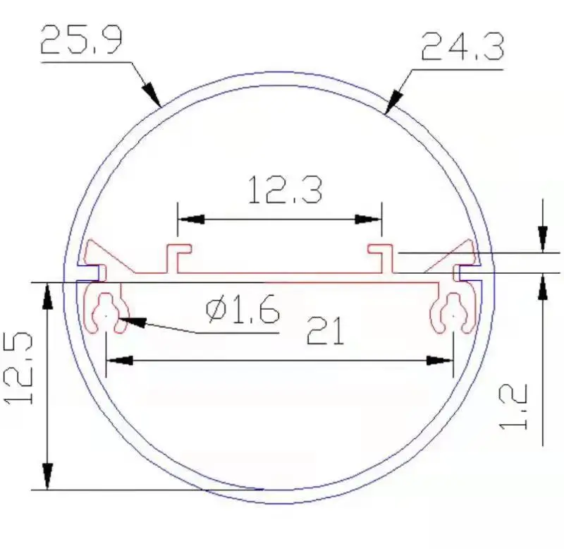 | Alumínium profil az anyag belsejében | 6063 alumínium ötvözet |