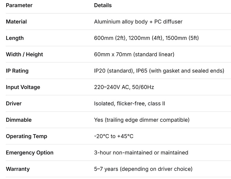 Anyaga: Általában extrudált alumínium a hőelvezetéshez, polikarbonát diffúzorral párosítva. Léteznek acél változatok, de az alumínium az arany szabvány a LED-ek hidegen tartásában.